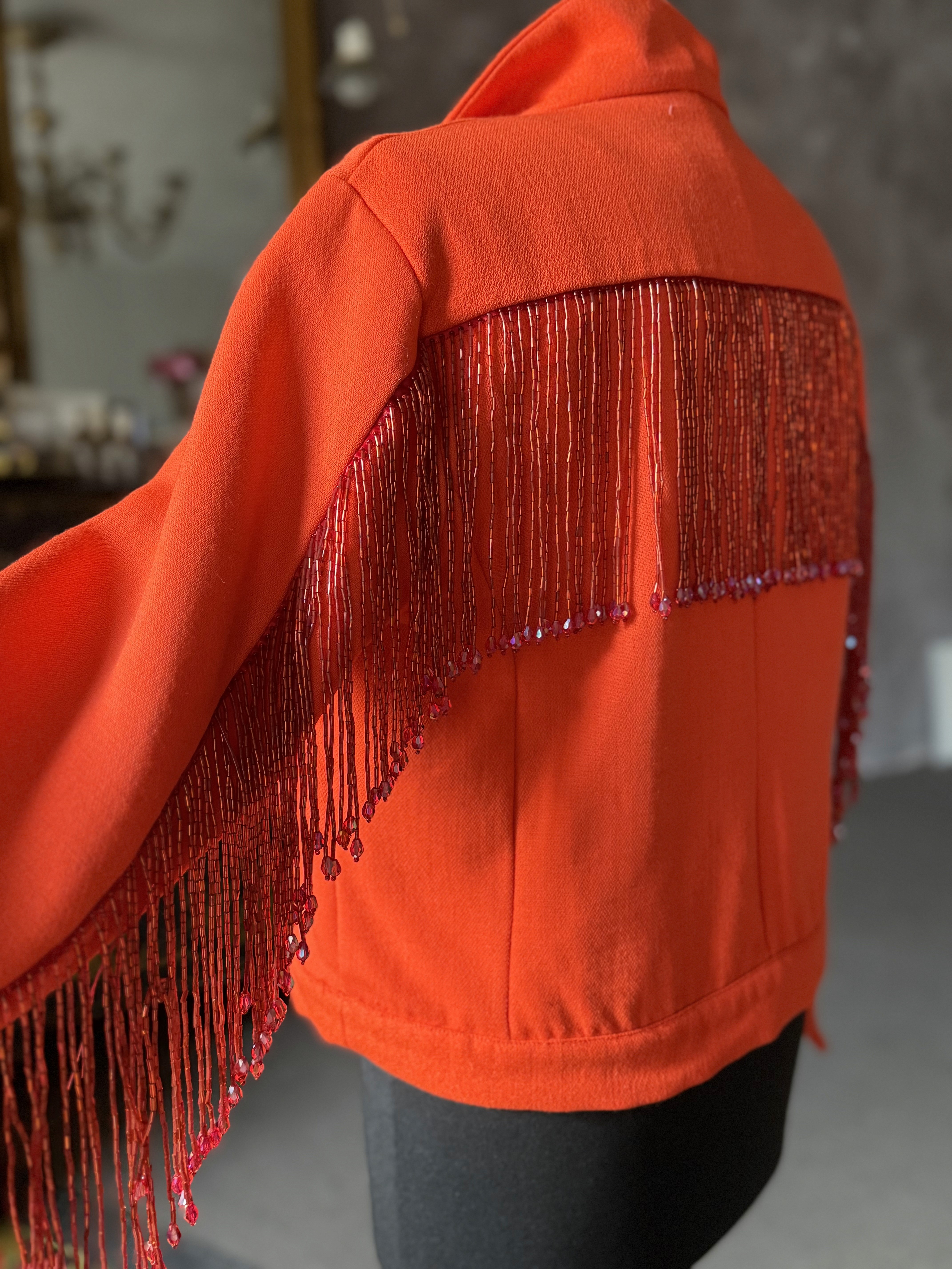 Orange Jacke mit Perlenfransen